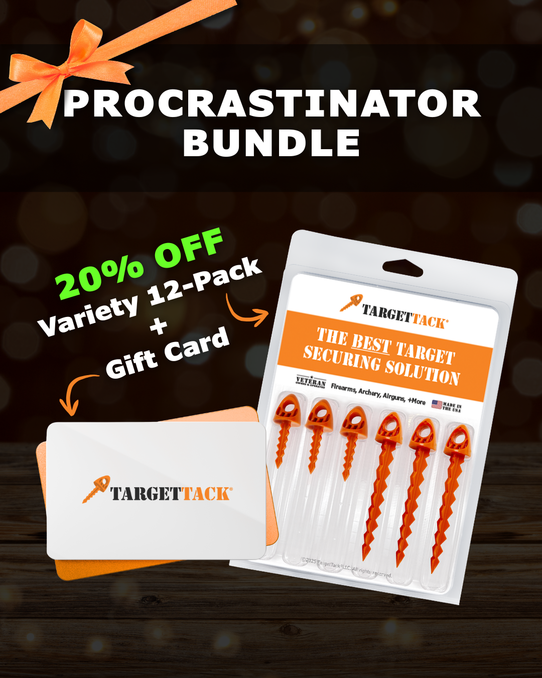 The Procrastinator Bundle is the ultimate last-minute gift for marksmen and archers. It pairs a versatile set of TargetTacks with a digital gift card, so you can give something physical and let them choose exactly what they need. Or, keep the physical gift for yourself. We won't tell.